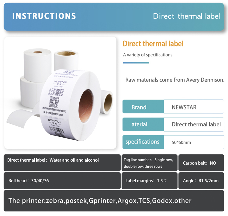 高品质50 x 60mm直接热敏标签,不干胶标签和空白不干胶纸卷产品特点